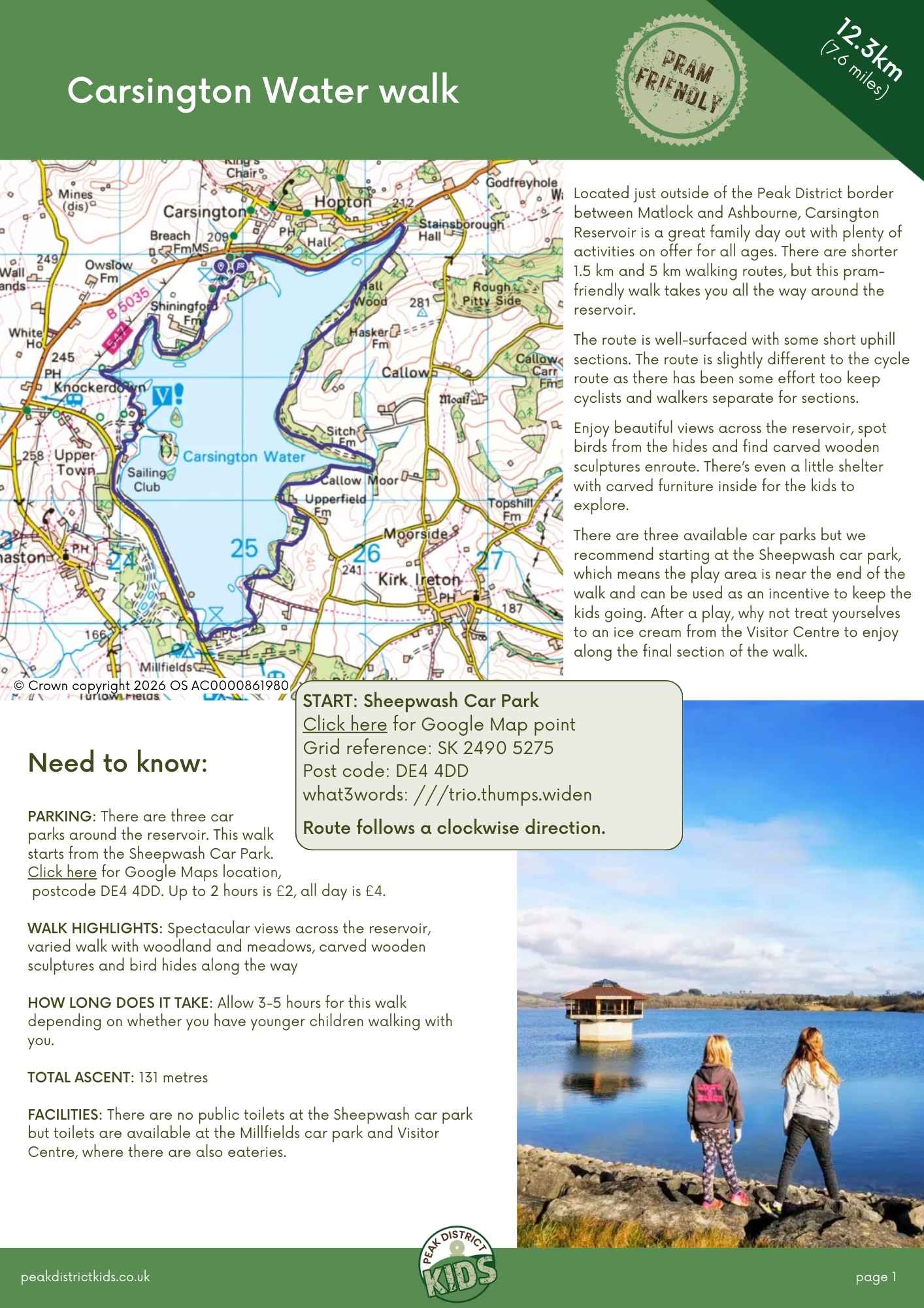 Download a printable guide of the Peak District Kids Carsington Water walk (12.3km, circular). This means you don’t have to rely on your phone for our step-by-step directions, and you can give the kids a copy to follow the route too! You can also use it as a PDF offline version on your mobile device.