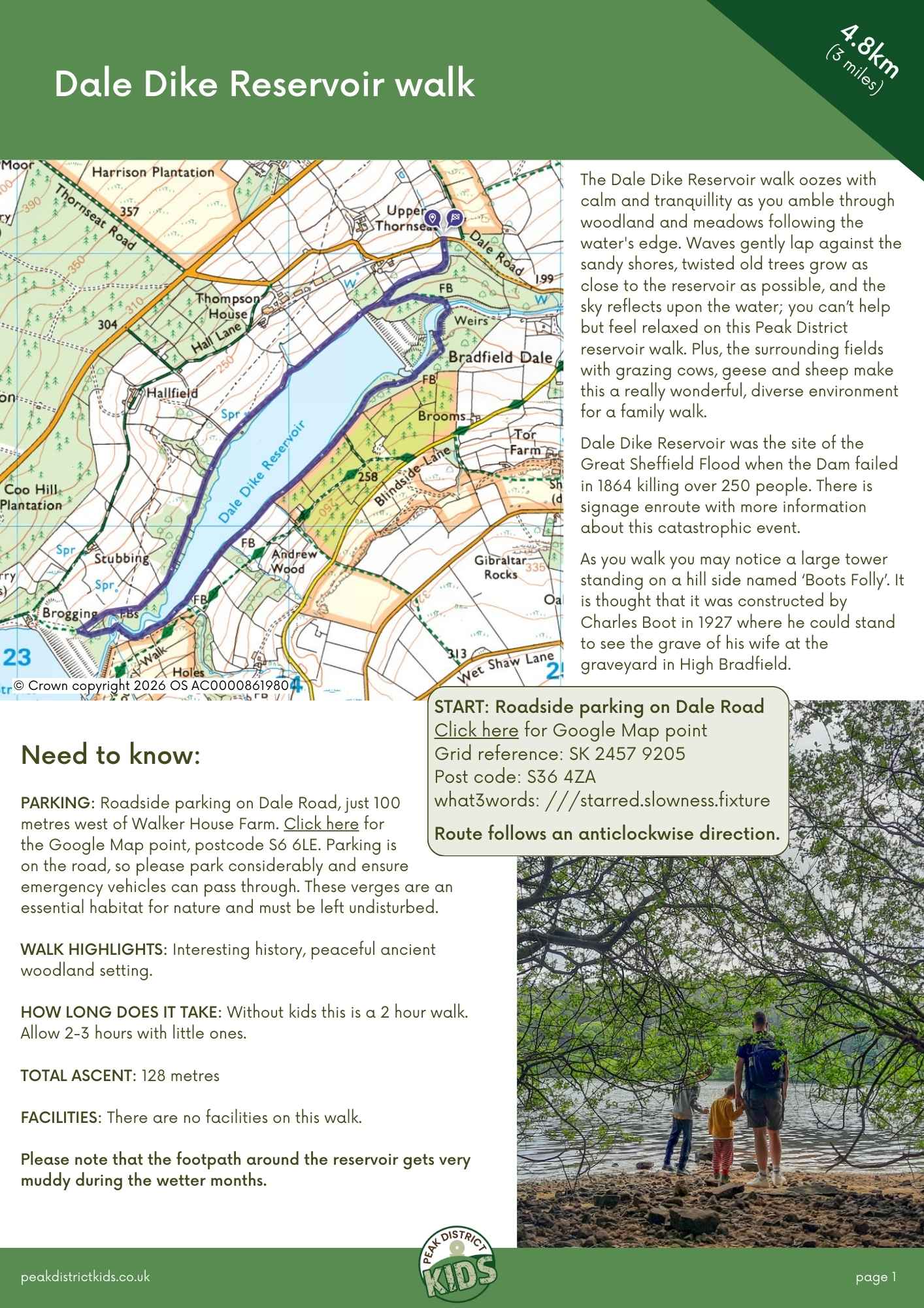Download a printable guide of the Peak District Kids Dale Dike Reservoir walk (4.3km, circular). This means you don’t have to rely on your phone for our step-by-step directions, and you can give the kids a copy to follow the route too! You can also use it as a PDF offline version on your mobile device.